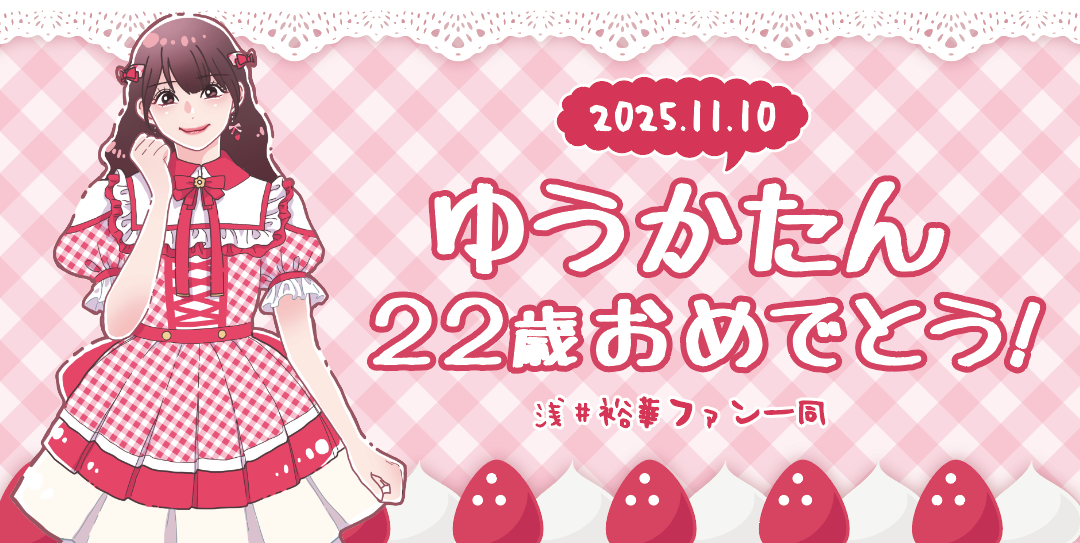 アイドルグループ「SKE48」のメンバー・浅井裕華さんの生誕祭用メッセージカードと横断幕のイラスト・デザインを制作させていただきました。